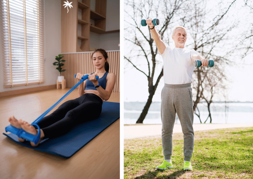 - Santé osseuse : Les exercices de renforcement augmentent la densité osseuse et préviennent l’ostéoporose, limitant le risque de fractures, surtout chez les personnes âgées.